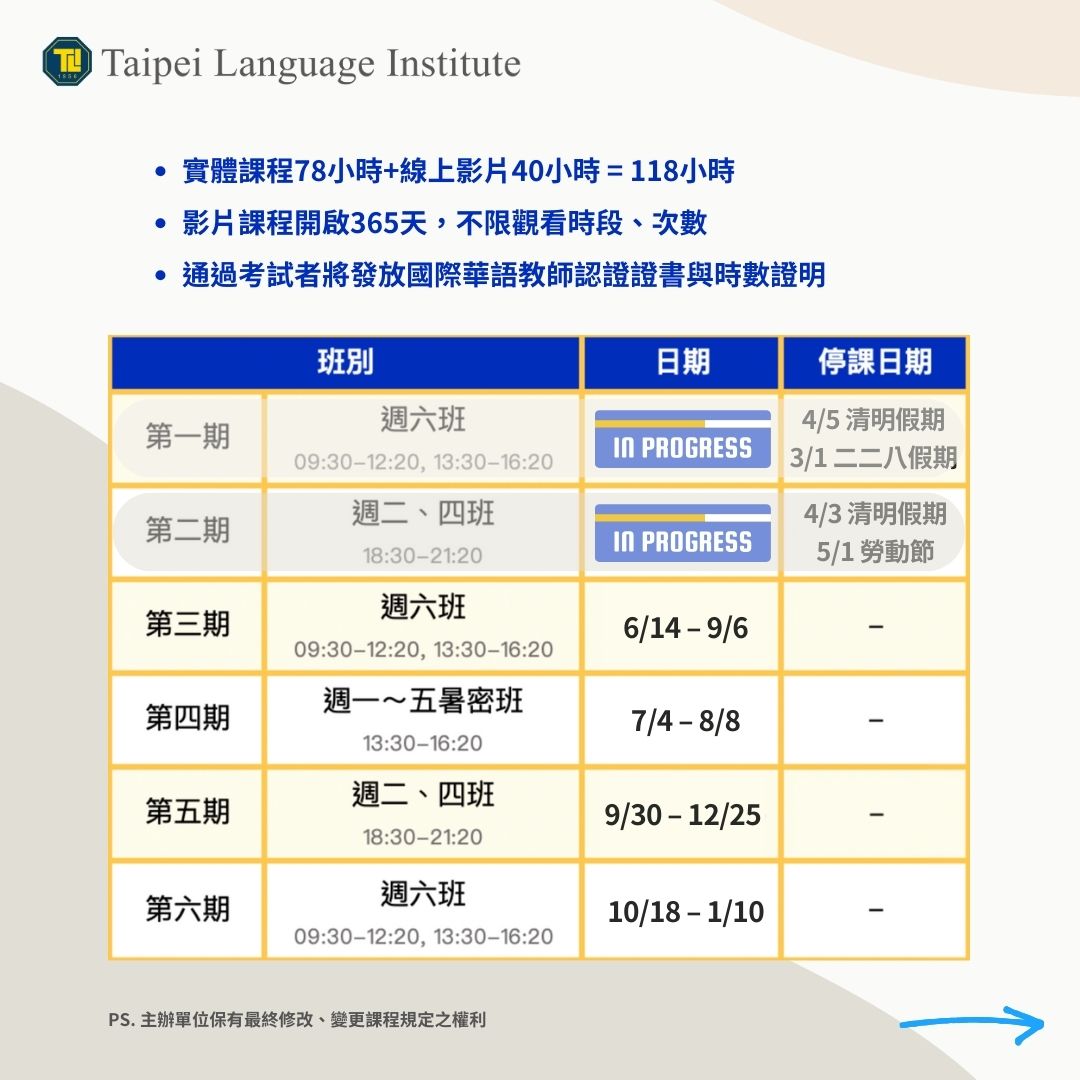 📚 TLI華語資培訓的課程內容,由專業資深的講師群精心規劃,每位講師都經驗豐富、身經百戰。118小時紮實培訓、涵蓋專業知識、兒少、商務、文化、多媒體數位、教案課程設計等,養成多面的對外漢語/對外華語教學能力。