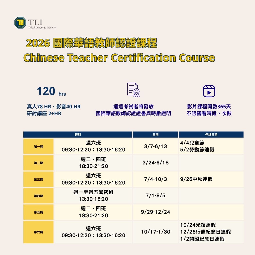2026 TLI 國際華語教師認證課程