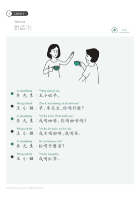 TLI Park精心編著全系列從零基礎到進階的學習教材,包含單字、發音、生詞和對話、句型解說,並提供繁體、簡體、英文、日文版本等多種語言的線上教材,讓學習中文事半功倍。此系統性教材由語言學教學團隊研發,由淺入深。結合現代美學設計的插圖,可輕鬆理解課程內容,提升聯想力。